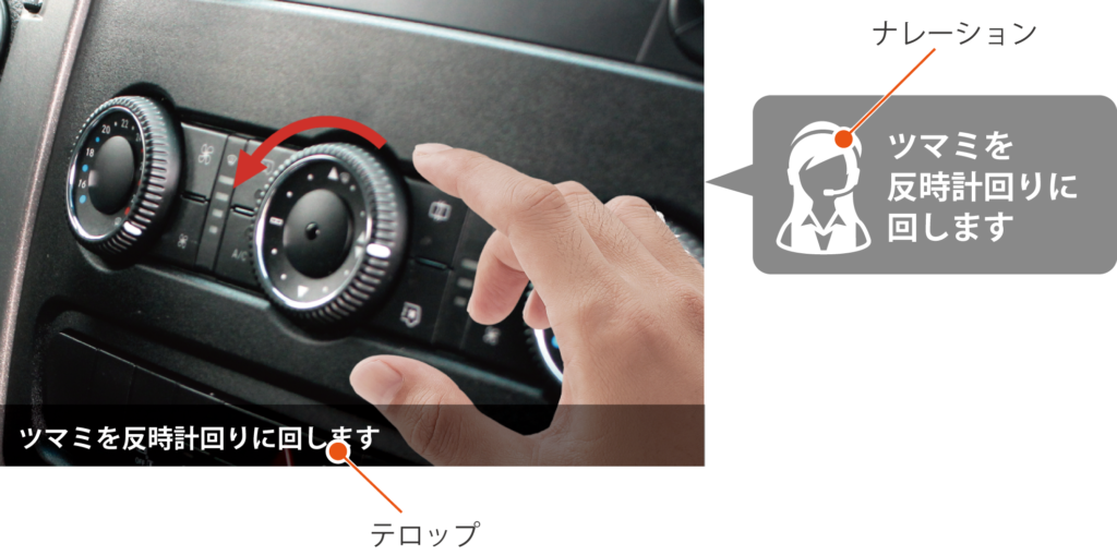 ナレーションは、手順や注意点を音声で伝えるのに有効です。ただし、音声が聞こえない環境でも視聴できるような配慮も欠かせません。